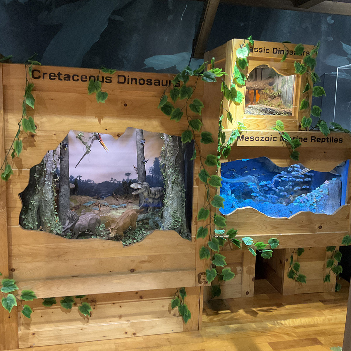 ホビー館外ステージには恐竜の巨大ヘッドが登場し、館内も「恐竜の森」が新たにできました。
