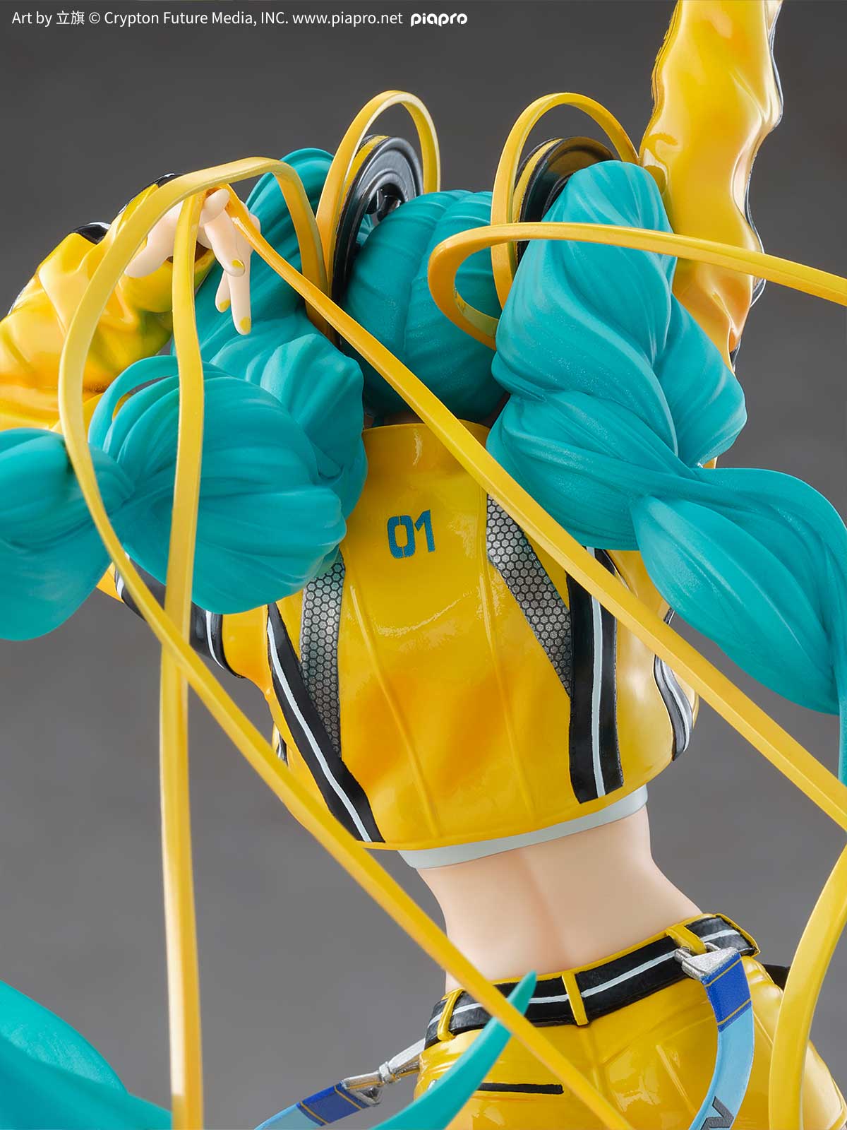 トレードマークのツインテールとカセットテープを融合させた独創的なデザインは、一本一本の髪の毛や流れるようなテープの造形によって、「過去と未来の交響」というテーマを見事に表現。