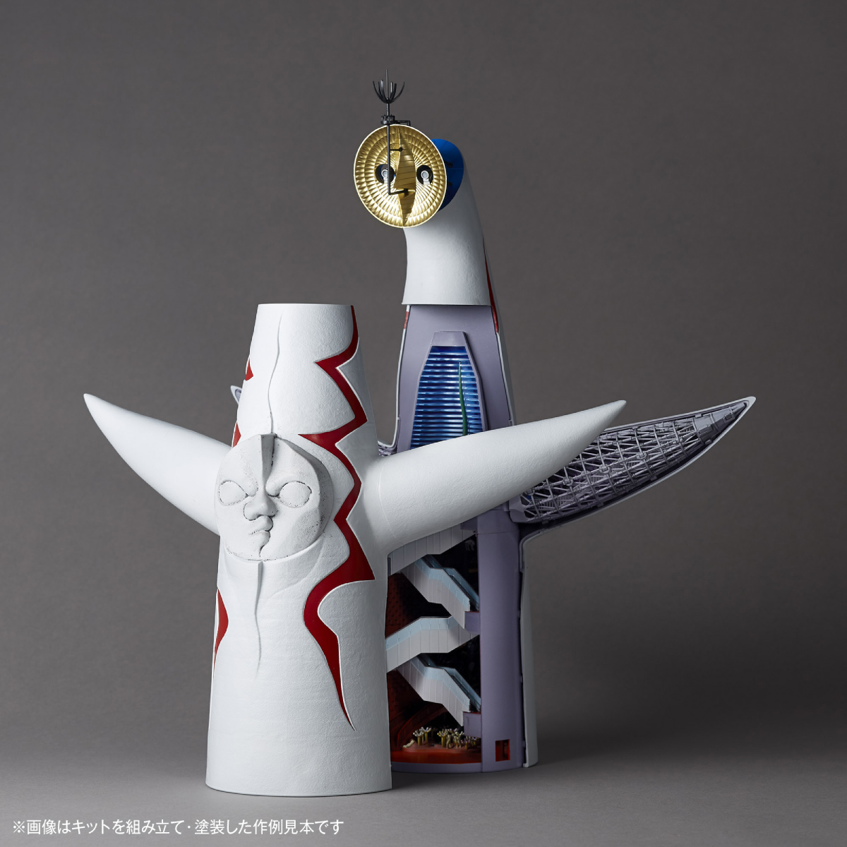 岡本太郎が生み出したアート作品と建築物が融合した唯一無二の存在を、様々な角度から観察することのできるプラスチックモデルキットです。組み立ててよし、塗装してよし。オンリーワンの立体解剖図として楽しんでいただけます。