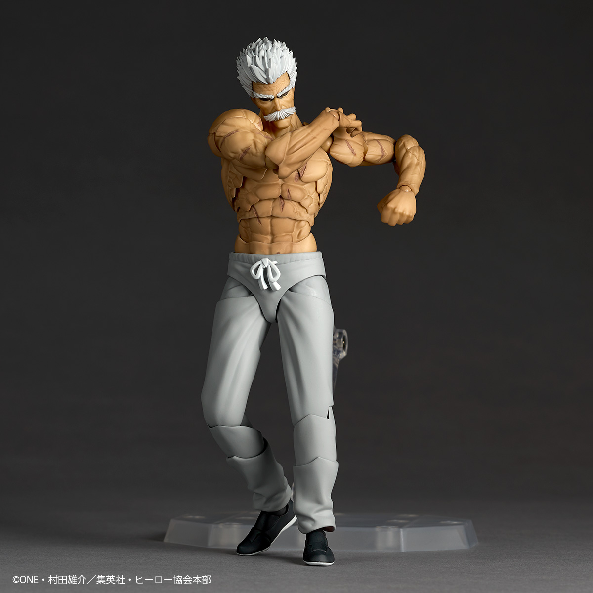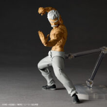 鍛え上げられたボディには、両腕を大きく前後に振り、腰を低く落とすことのできるアクションに合わせてチューンした可動ギミックを搭載。険しい表情の交換用フェイス4種やシャープに絞った筋肉、全身に刻まれた歴戦の傷跡もリアルな造形でキャラクターを表現。