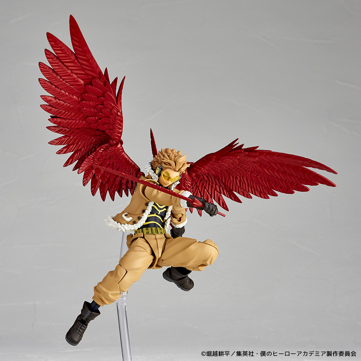 同シリーズのエンデヴァー(№028)と並べれば、初登場直後から存在感を強く印象付けた対ハイエンド脳無戦でのチームアップも再現可能! ウィングヒーロー・ホークスの速すぎる活躍をアメイジング・ヤマグチでお楽しみください!!