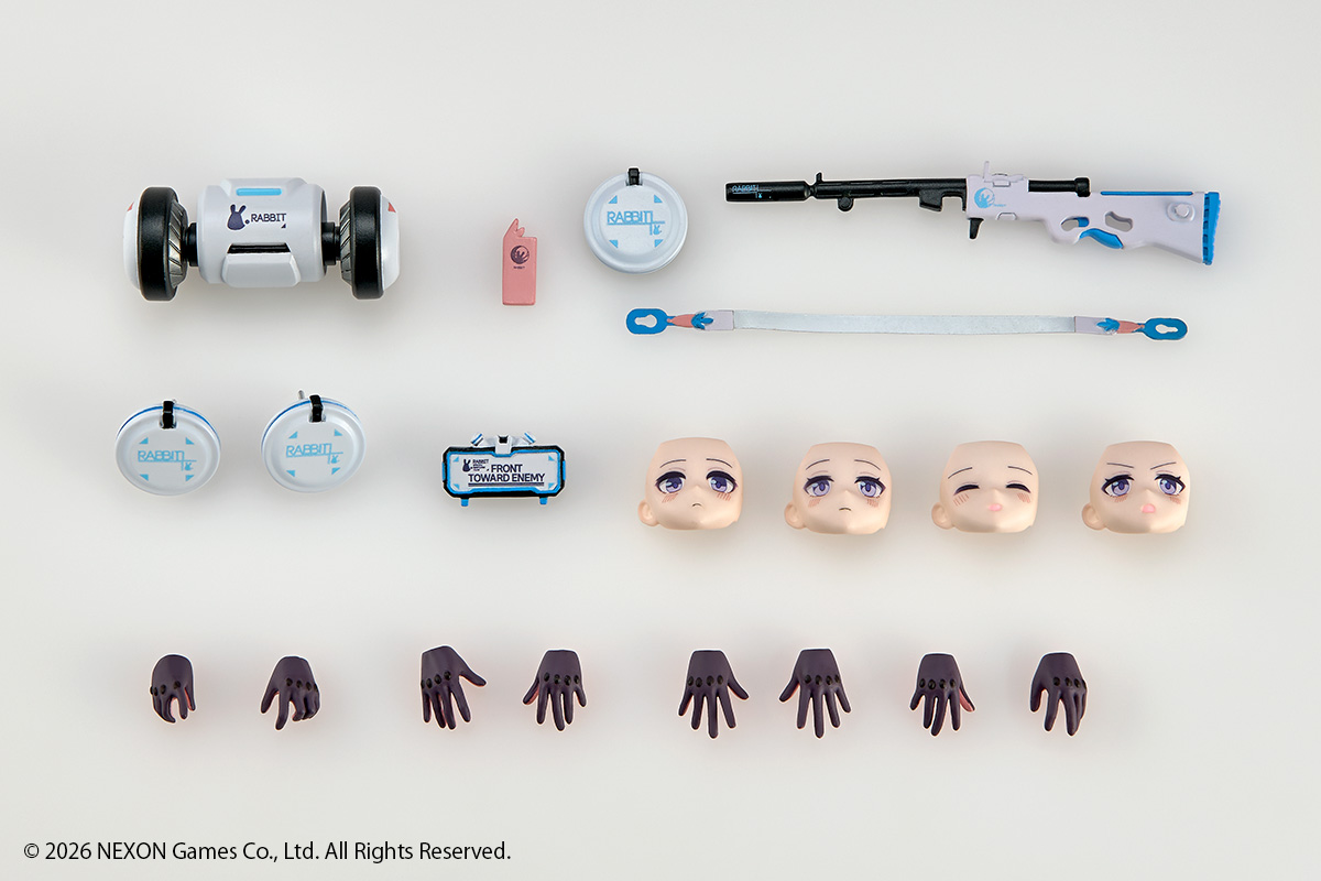スキルで使用する「クレイモア」、「自走閃光ドローン」や、ウサミミデザインが特徴的なスマホも付属!