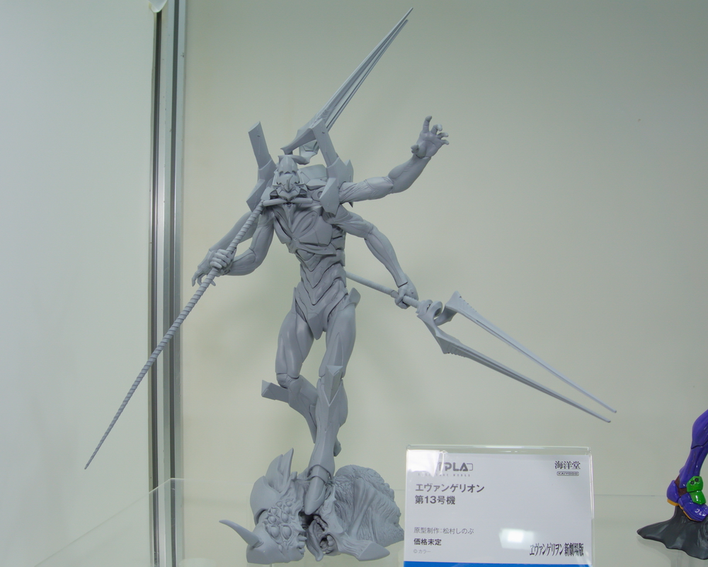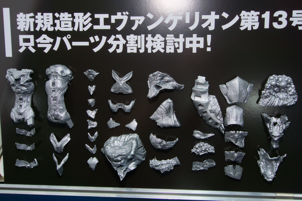 エヴァンゲリオン第13号機は原型展示に加えて、製品化のための分割検討中パーツを展示。