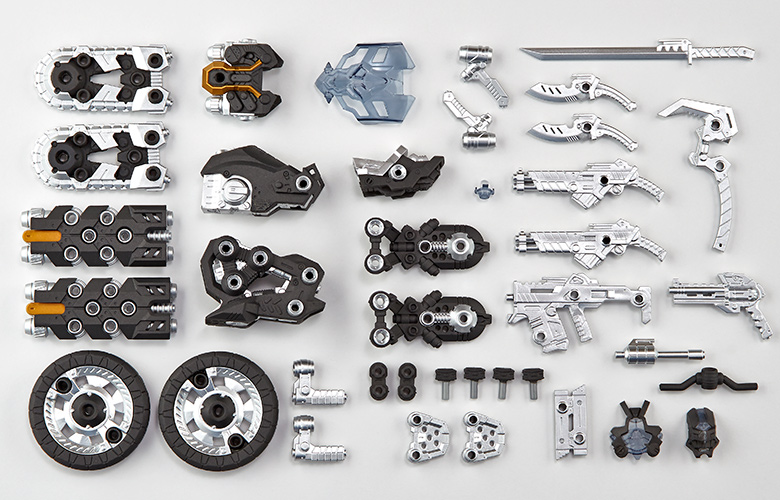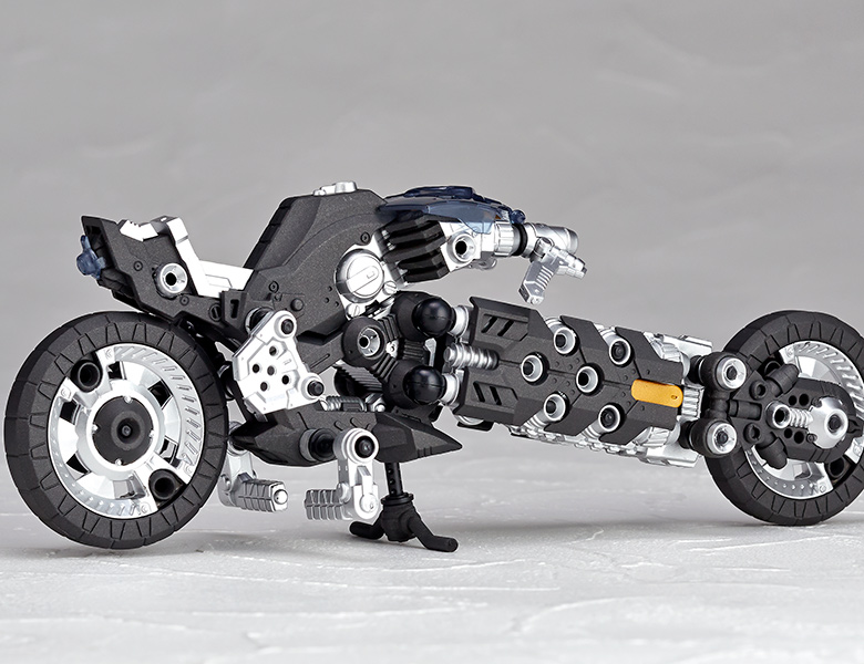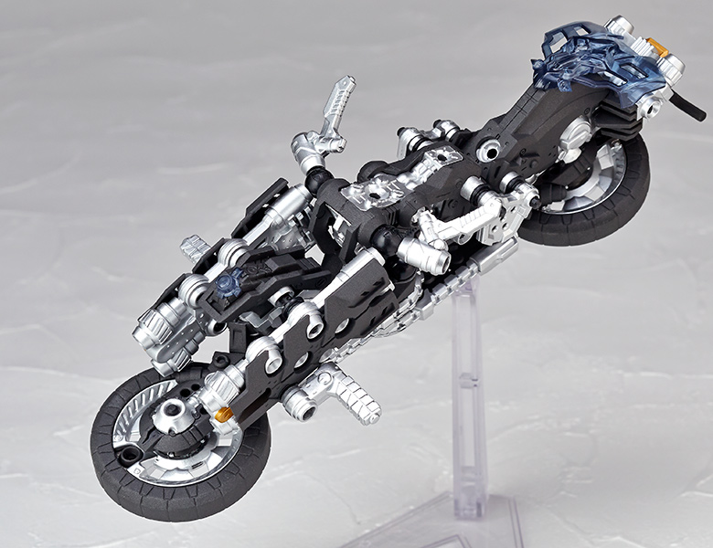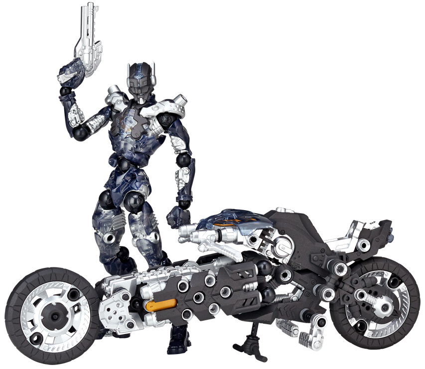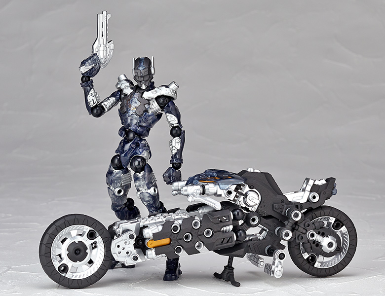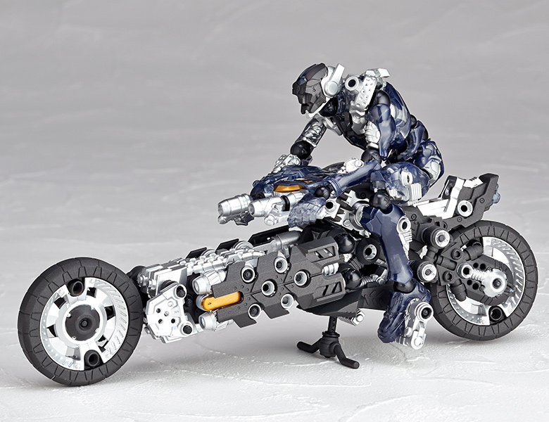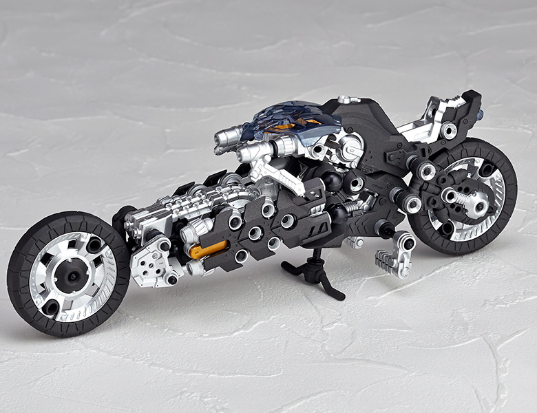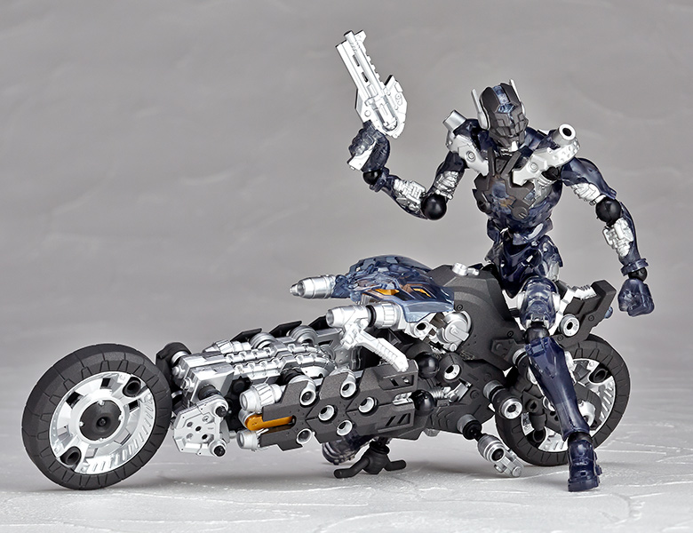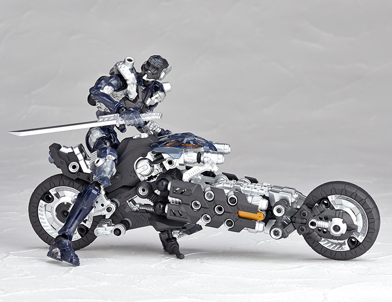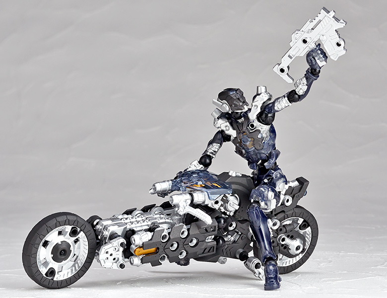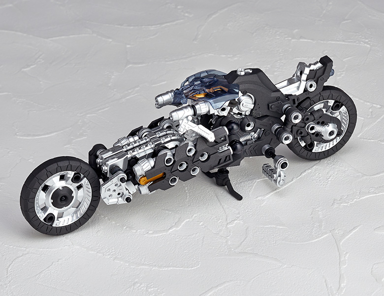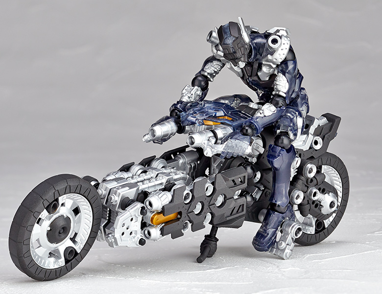 ●漫画家 内藤泰弘と海洋堂のコラボによるアクションフィギュアとブロックトイの魅力を併せ持ったアッセンブルボーグ∞NEXUSシリーズ。超高速インターセプト・モーターバイク 「ジャッカル」が一部新規パーツを組み込み、新たな配色となった"ゴーストモーター"として登場。カラーバリエーションにとどまらない、新たなキャラクターとして位置づけできるともいえる∞NEXUSシリーズの第四弾。