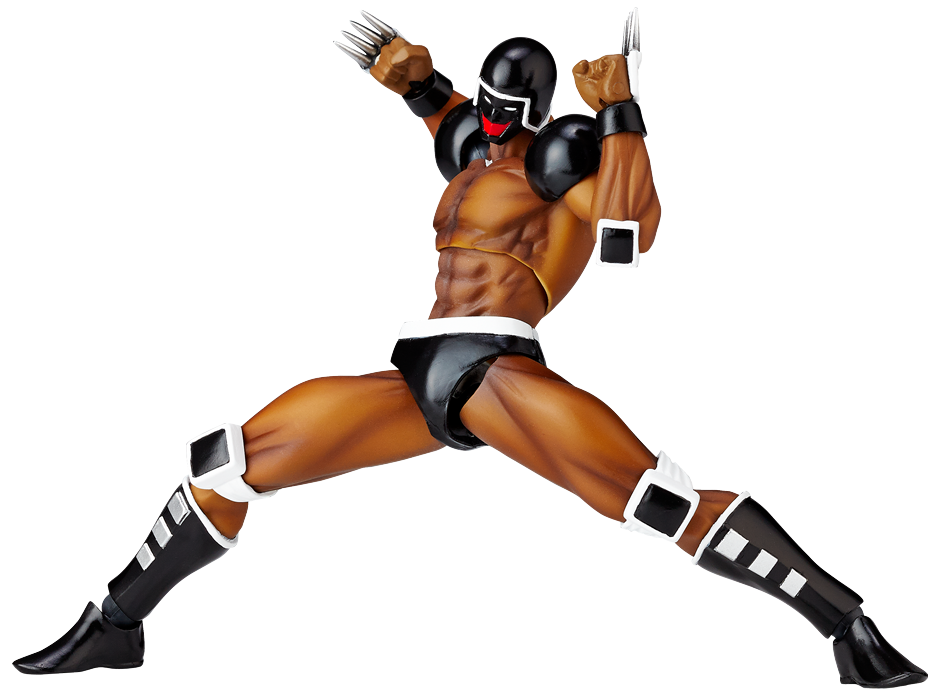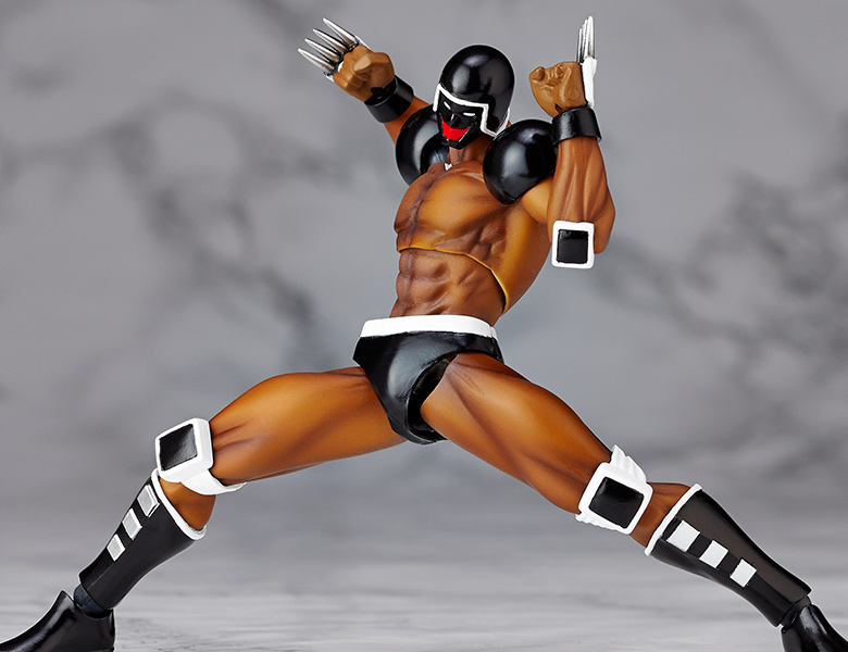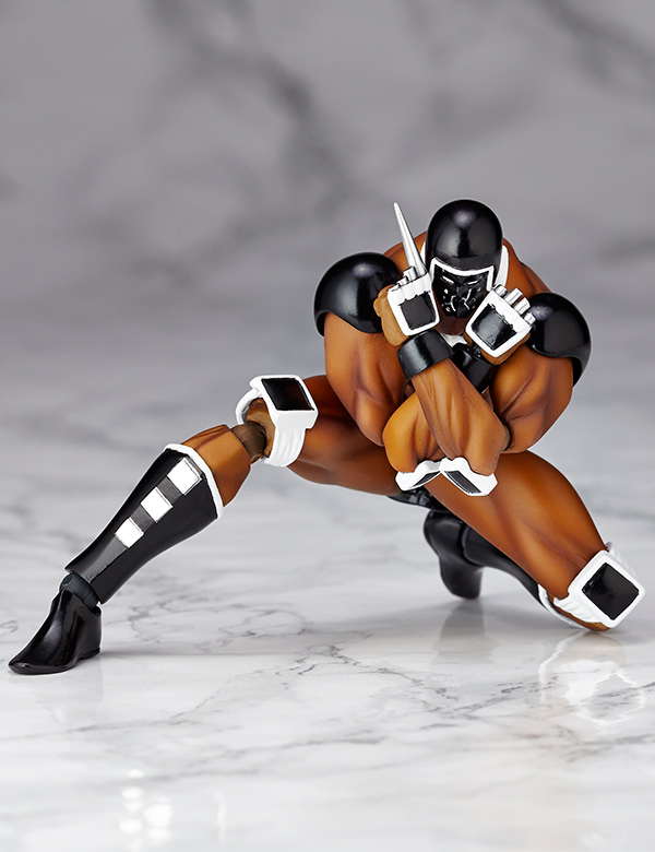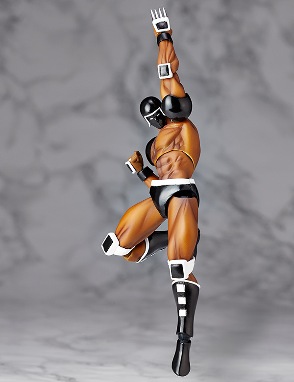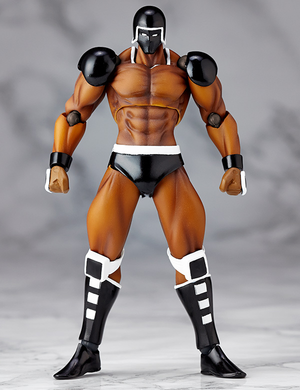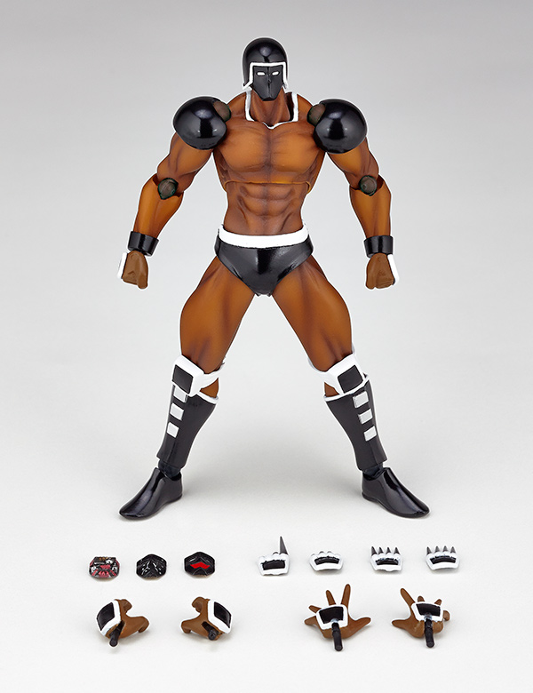 超人オリンピック ザ・ビッグファイト編「富士の最終予選の巻」にて登場し、機械の体を持つロボ超人ウォーズマンがリボルミニに参戦! ファイティングコンピューターの異名を持つ、黒ずくめのボディを完全表現。多彩なオプションフェイスパーツにより、印象的なシーンが多いウォーズマンの表情を再現できます。